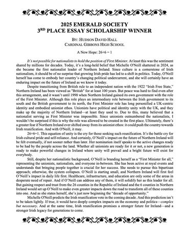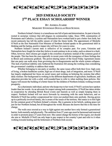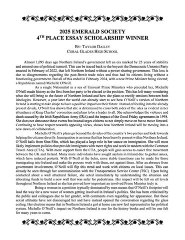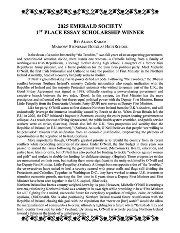 The Emerald Society of Fort Lauderdale conducts its annual essay contest with a scholarship to be personally awarded at its annual Emerald Society St. Patrick’s Day Breakfast. We are excited to announce that due to a generous sponsorship, we will be offering a total of $10,000 in awards. Five scholarships will be given out and may be used for any collegiate purpose to eligible Broward County High school seniors. The Scholarships are as follows: